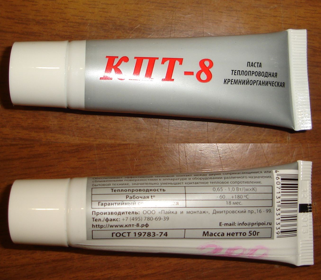 Теплопроводная паста КПТ-8, ламинатный тюбик 50 грамм (ГОСТ 19783-74) Кремнийорганическая Паста Теплопроводная